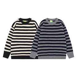 เสื้อสเวตเตอร์ถักสำหรับผู้ชายและผู้หญิงลายขวางแนวย้อนยุคดีไซน์เรียบง่ายเสื้อสเวตเตอร์ถักสำหรับฤดูใบไม้ร่วง
