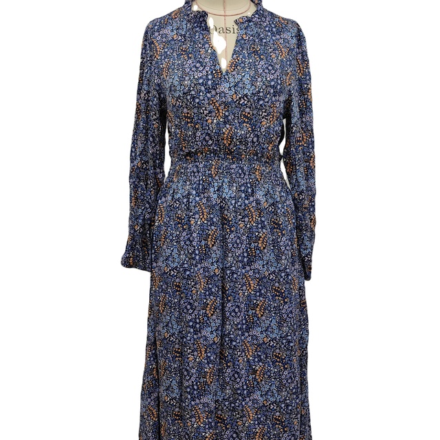 ชุดเดรสแขนยาว ผู้ผลิตมืออาชีพสั่งทํา เสื้อผ้าผู้หญิงพิมพ์ลายยืดหยุ่นสีน้ําเงิน คลุมชุดเดรสแขนยาว